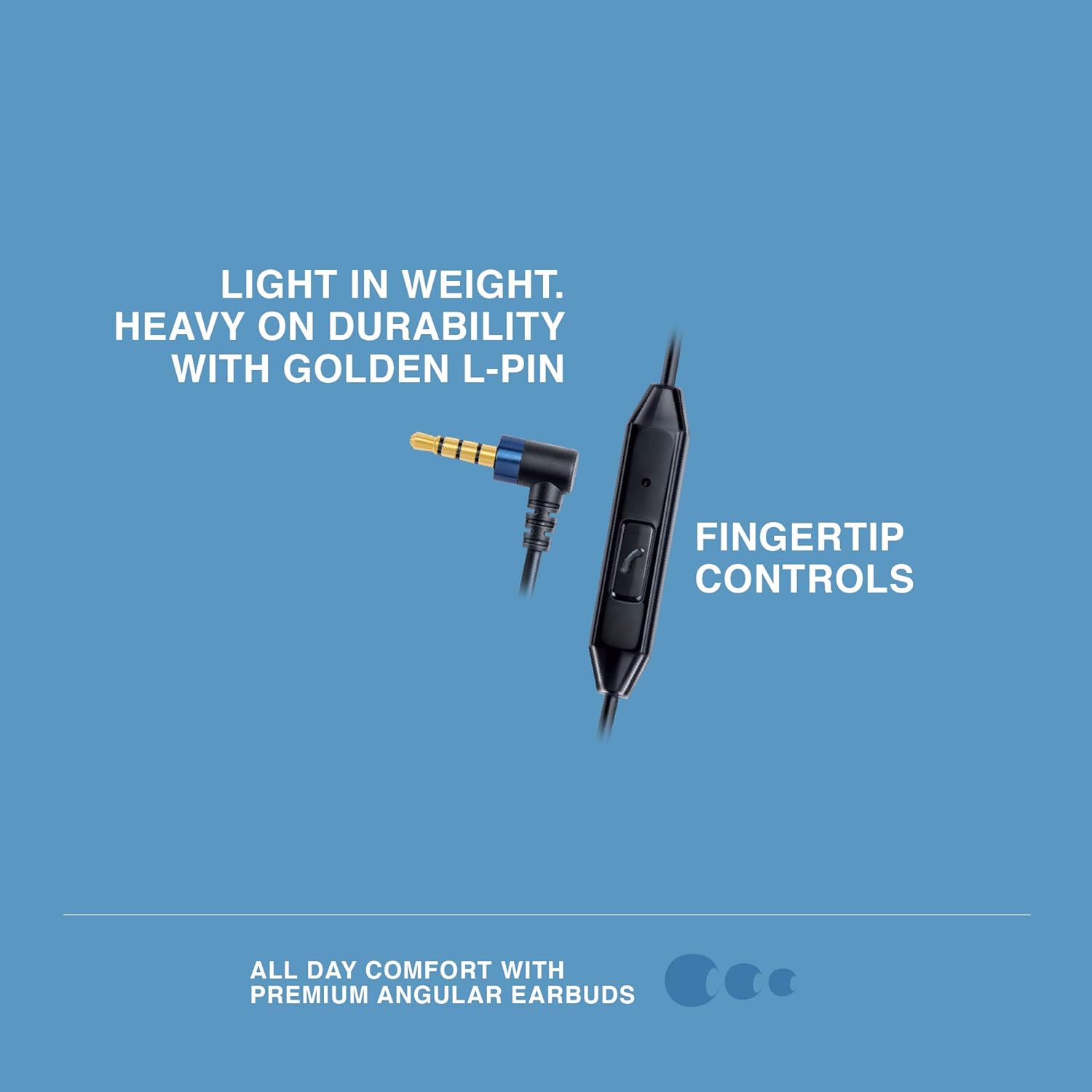 FINGERS SoundBoomerang Wired in-Ear Earphones with Mic (Bundled with Free Zip Carry Case & Golden L-pin Connector) (Imperial Blue + Silver)