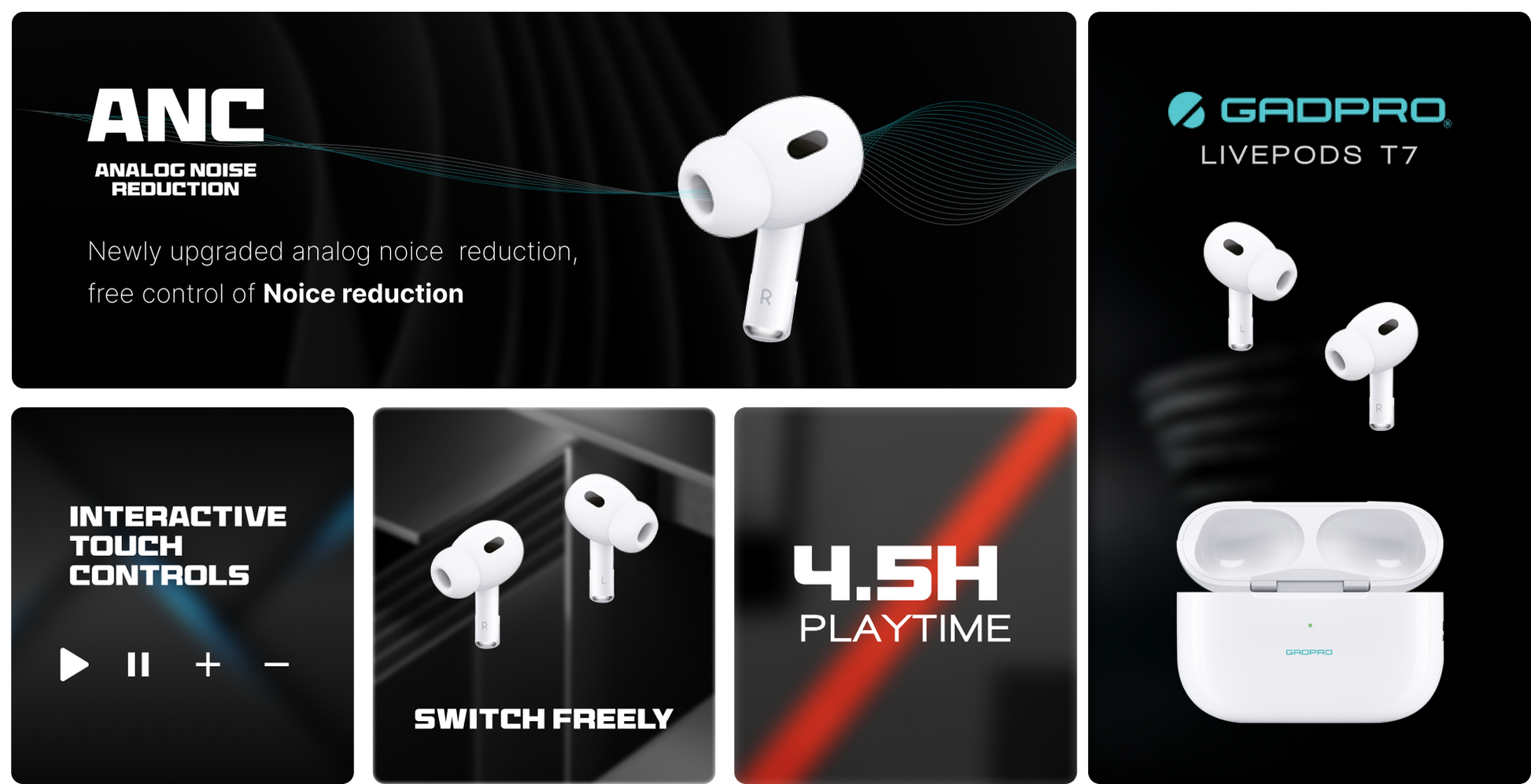 Gadpro Livepods T7 Earbuds with ANC Noise Reduction, Bluetooth 5.3, 300mAh Wireless Charging Case, Silicone Cover – TWS Earbuds for Calls & Music