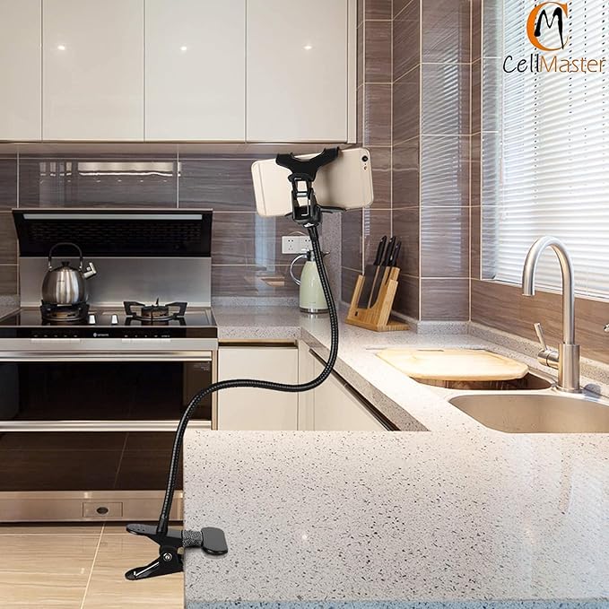 - SECURE AND ADJUSTABLE: The four claws with anti-slip and anti-sock rubber cushion keeps your cell phone sturdy and secure. Movable with long gooseneck and can be adjustable for perfect viewing. 360-degree swivel ball head provides a horizontal or vertical viewing angle.