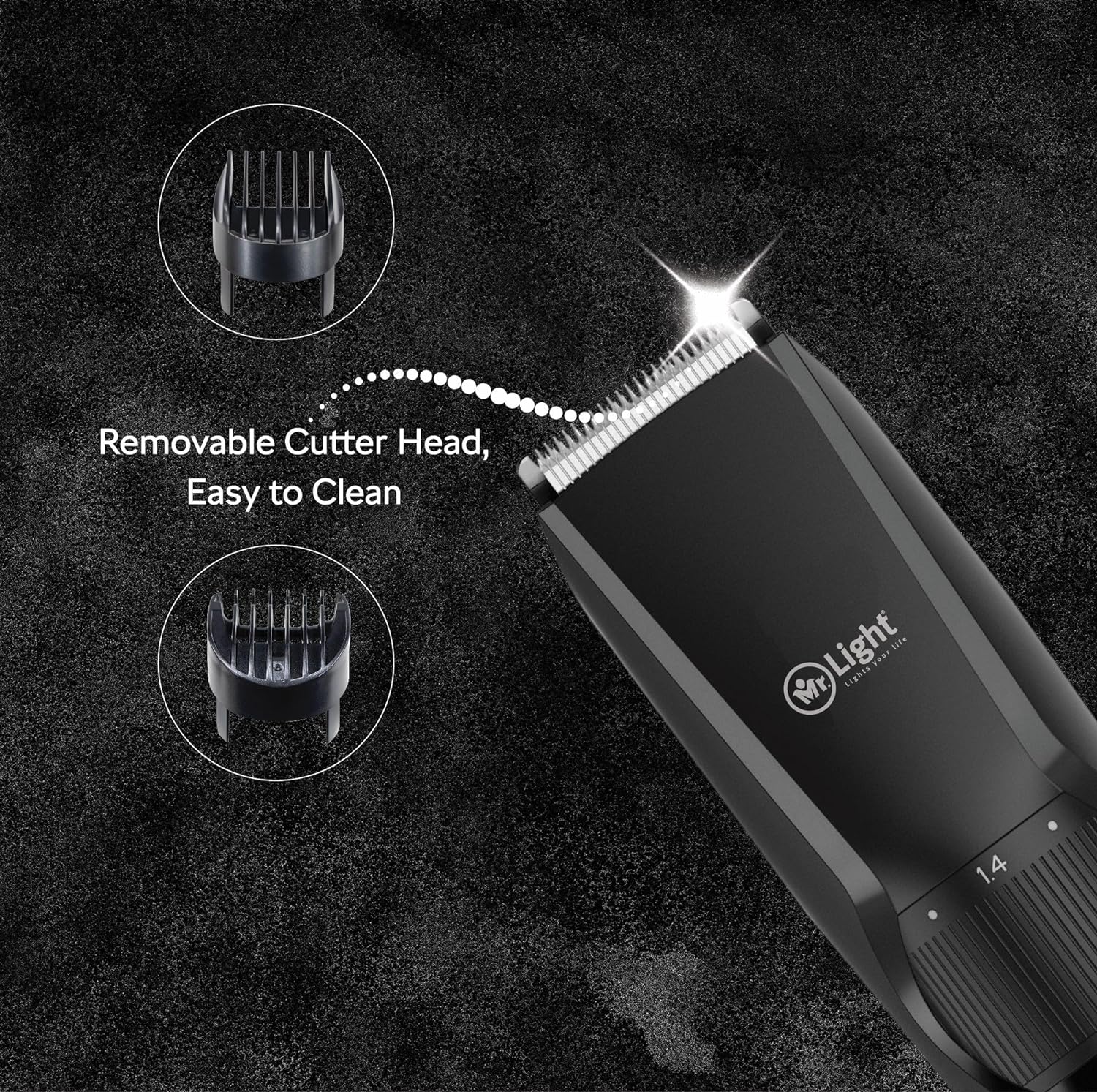 Mr. Light Lights Your Life Rechargeable Hair Trimmer for Men - 20 Adjustable Length, Removable Head, Travel Lock, Power Indicator, Waterproof - Mr6031, Black