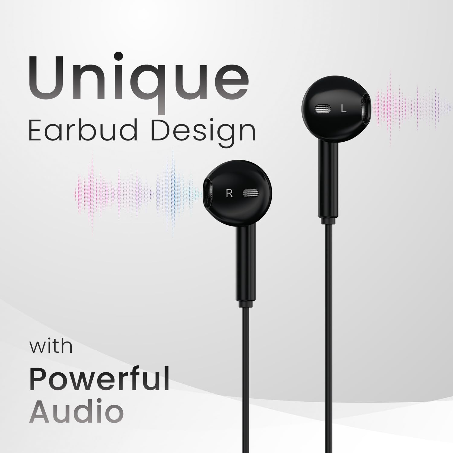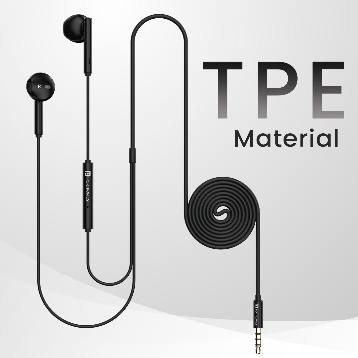 Portronics Conch Theta A in Ear 3.5mm Wired Earphones with In Line HD Mic, Powerful Audio, 14.2mm Dynamic Driver, Unique Earbuds Design, TPE Anti Tangle Wire,In line Controls,Wide Compatibility(Black)