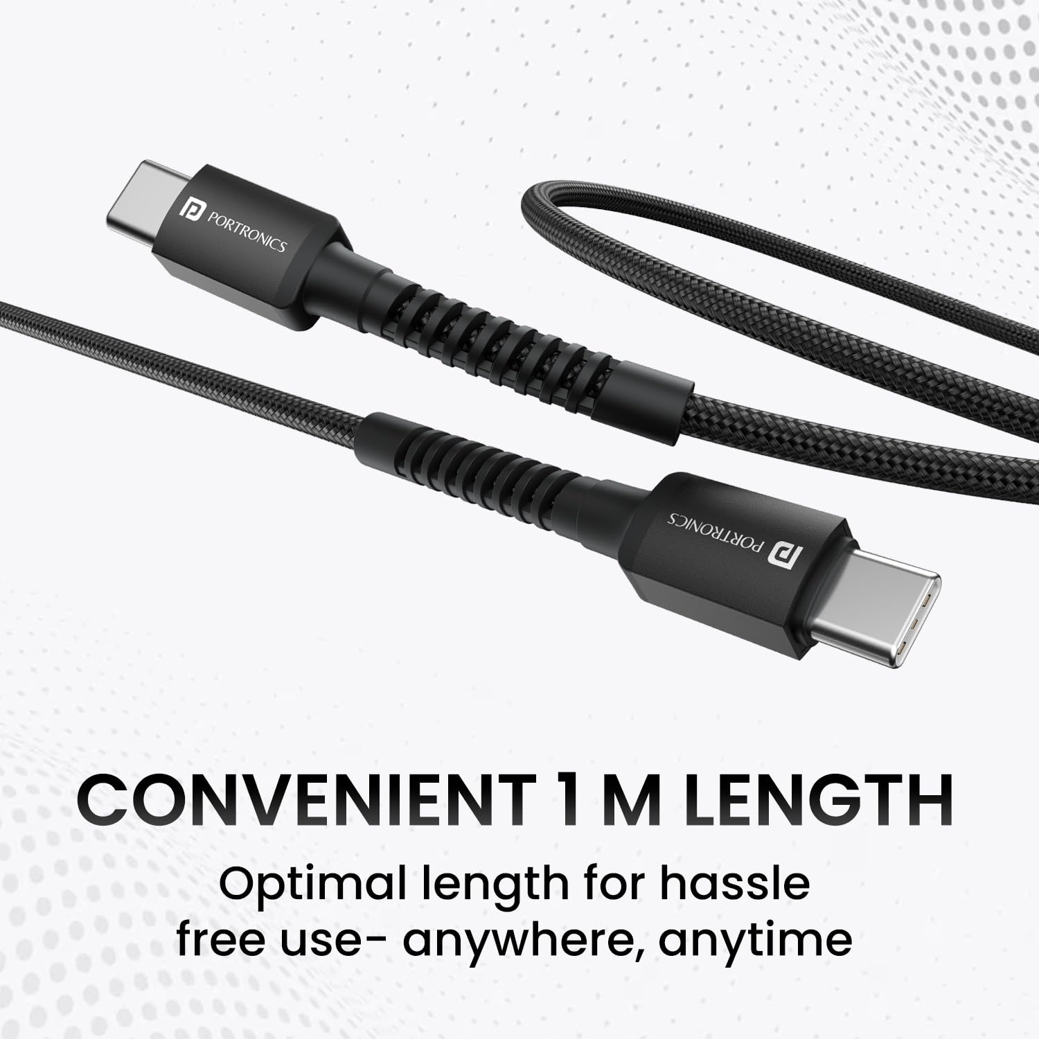 Portronics Konnect X 60W Type C to Type C Unbreakable Nylon Braided Cable, 1M Fast Charging Cable for iPhone 15 series, iPad, Samsung Galaxy & other Type C Devices(Black)