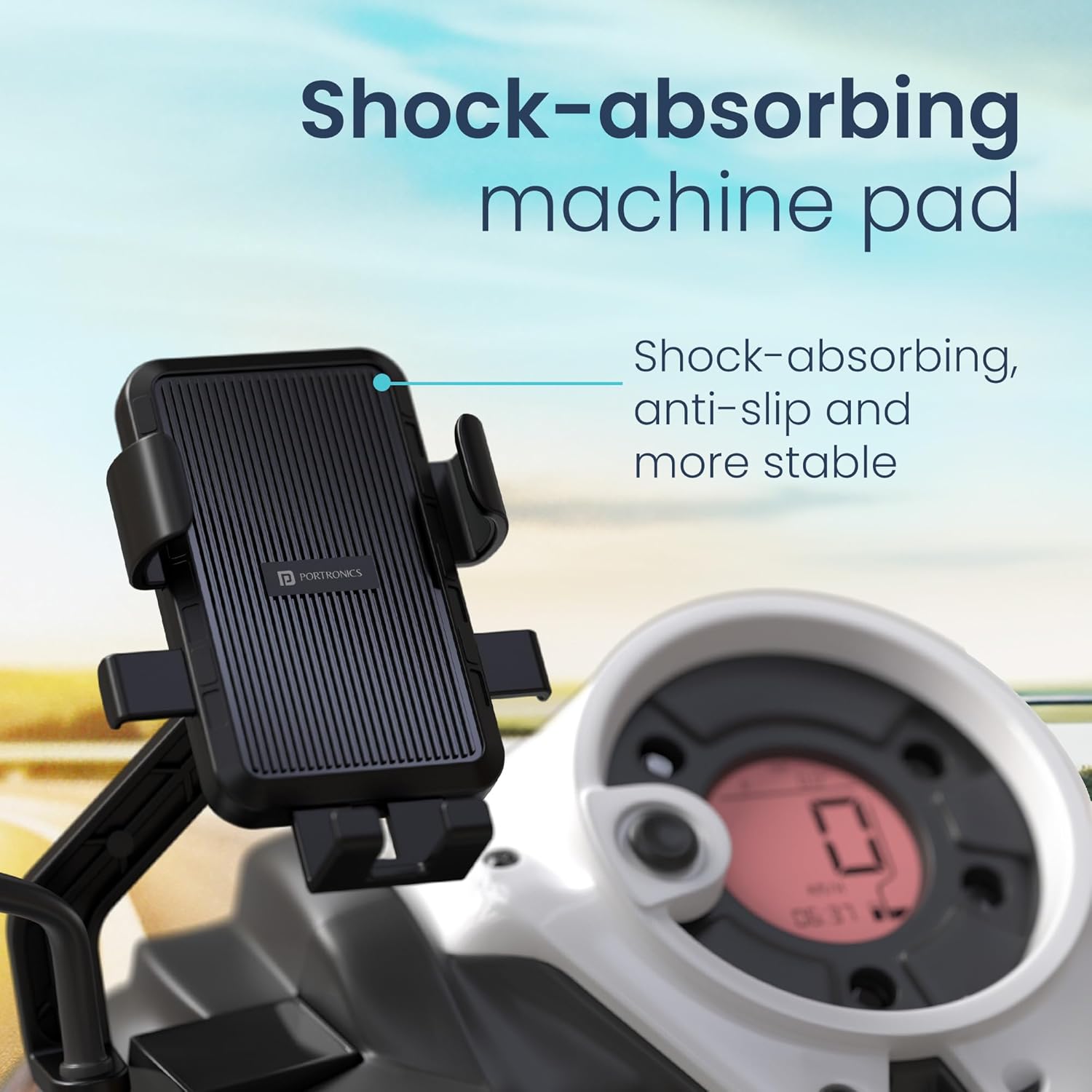 Portronics Mobike 5 Scooty/Scooter Phone Holder with Mirror Mount, 360 Degree Rotation, Strong Grip, Compatible with 4.7" to 7.2" Smartphone, Mobile Stand for Scooter, Cycle & Motorcycle (Black)