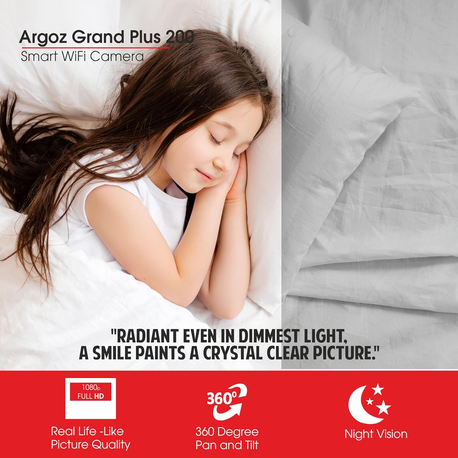 Zebion argoz 200 Full HD WiFi Camera 360 Deg Rotation, 145 Deg Tilting, 64GB Memory Card Slot, Plastic Body,5V Adaptor, WITHMini USB Cable mounting Bracket & Weight: 310 GMS